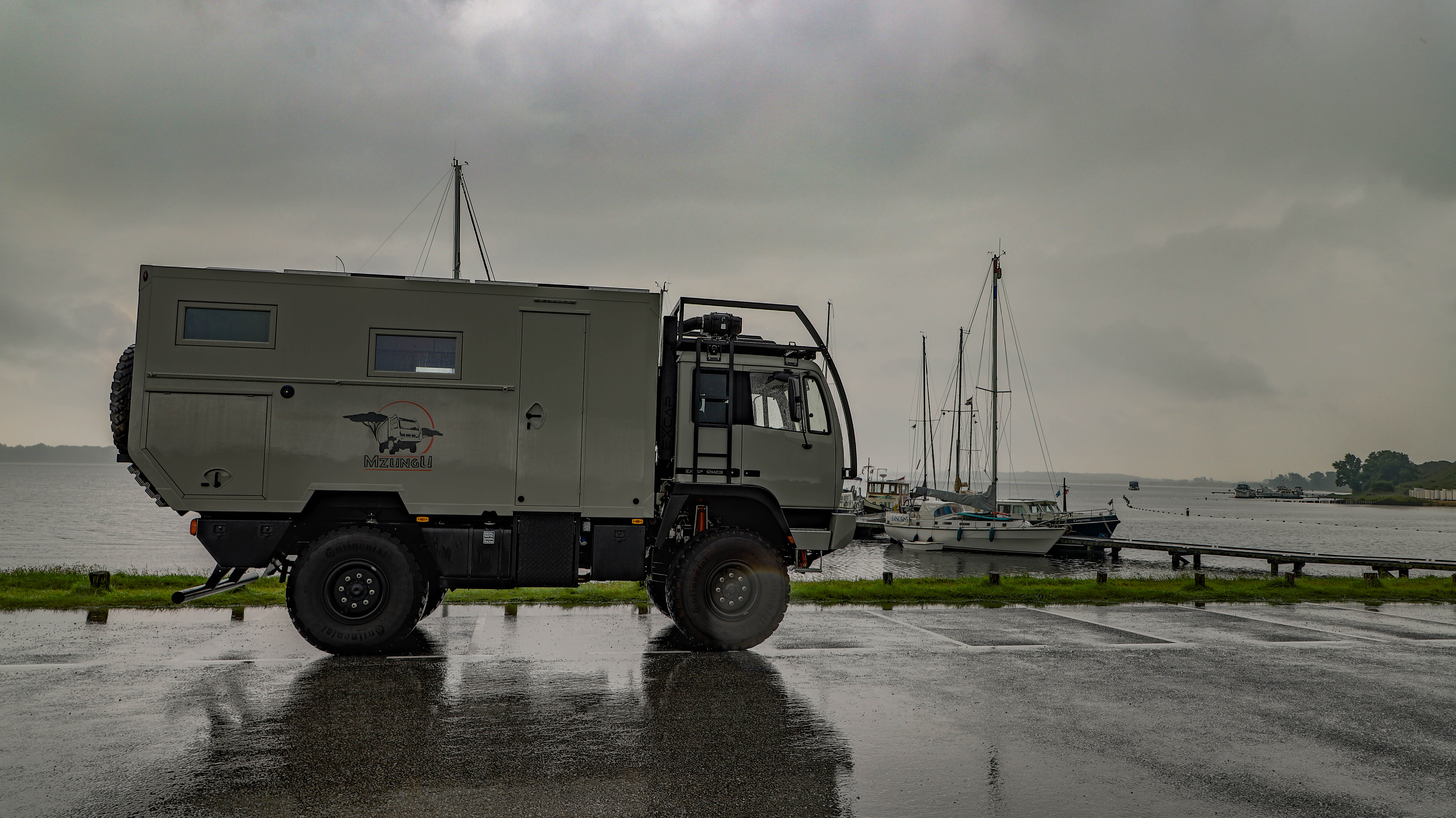 Mzungu will im Dreck spielen – dafür wurde er ursprünglich gebaut und dafür haben wir ihn gekauft. Aber was tun, wenn sich 9 Tonnen im Dreck festfahren und niemand in der Nähe ist, der sie aus dem Dreck ziehen kann? Eine Seilwinde wäre klasse, hilft aber auch nicht immer – insbesondere dann nicht, wenn der Weg raus aus dem Dreck nach hinten geht oder es keinen Anschlagspunkt gibt, der 9 Tonnen Zug standhält.