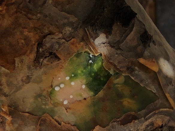 Im Norden, in der Region Nejd, wo die Rub Al-Khali an das Dhofar-Gebirge grenzt, wachsen wegen der Trockenheit die Weihrauchbäume mit der besten Qualität der Harzes. Nur hier ist der Harz, der zwischen April und November alle 3 Wochen geerntet wird, fast weiß und damit sehr rein und hochwertig (die erste Ernte im Jahr ist jedoch auch hier kommerziell nicht verwertbar). Wir besuchen das Wadi Dawkah und reiben an einem der dort außerhalb der Einzäunung stehenden Bäume an einer Stelle, an der die Rinde in der Vergangenheit eingeritzt worden ist. Unsere Finger riechen leicht nach Weihrauch. Als wir eine knappe Stunde später wieder an dem Baum vorbeigehen, haben sich ein paar ganz kleine, weiße Harzkügelchen gebildet – ganz deutlich Weihrauch.