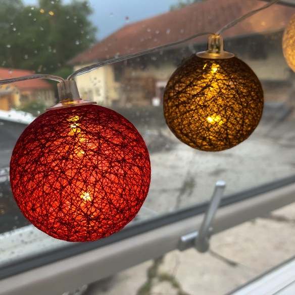 Erst als wir zurück sind am Klosterhof wird es windig, es regnet, die Temperaturen sinken merklich und es gewittert. Wir sitzen zu dem Zeitpunkt schon trocken und warm im Auto, genießen den Abend bei Lichterkette, Gemüsepfanne und Weißwein und freuen uns über unser Glück.