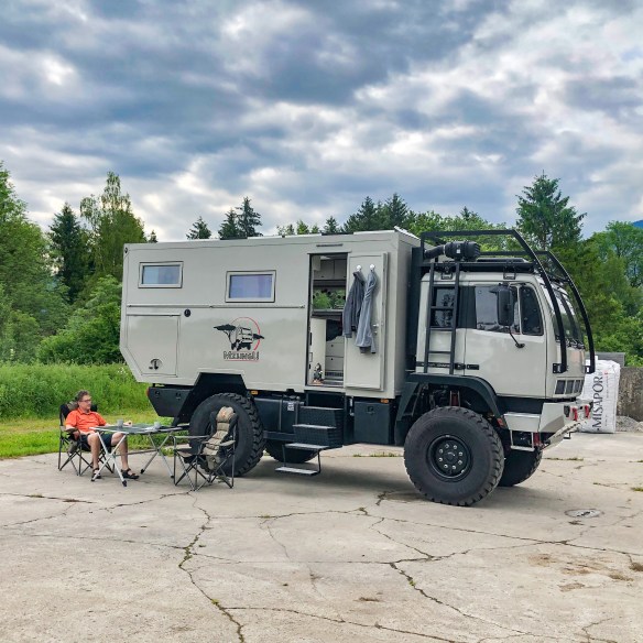 Mzungu haben wir während unserem Kurztrip wieder ausgiebig genutzt. Es gibt morgens draussen Milchkaffee mit aufgeschäumter Milch, am Feiertag gibt es Rühreier und Ina backt Kuchen. Abends duschen wir mit warmem Wasser und stoßen mit kaltem Sekt aus dem Kühlschrank an. Da wir Sonne, und damit Strom ohne Ende haben, kochen wir bei Regen drinnen auf unserem portablen Induktionsfeld und nicht mit Gas. Unser Fahrerhaus schützen wir vor den UV-Strahlen mit unseren Blidimax-Verdunklungen. Und auch ein Mittagsschläfchen in der von der Klimaanlage gekühlten Kabine darf nicht fehlen.