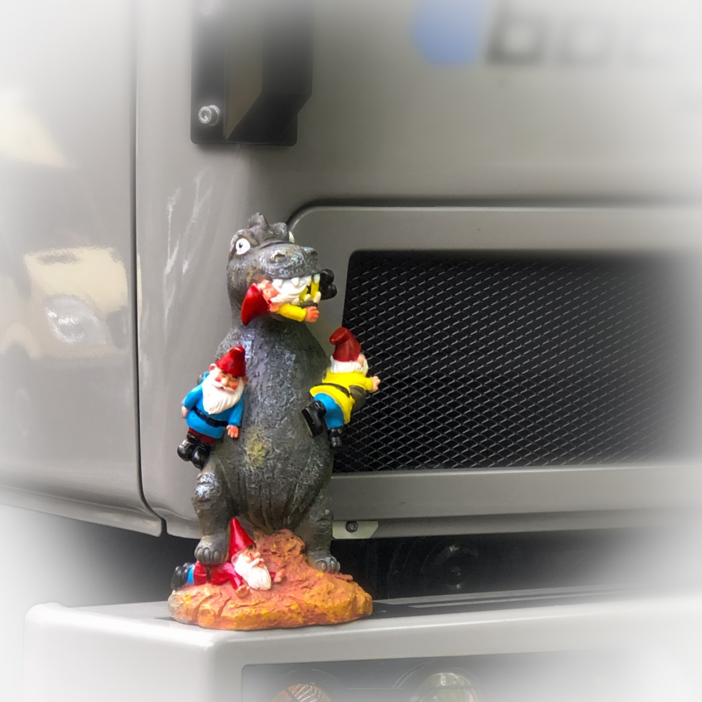 Mitten in der Nacht wollte eine Gruppe Gartenzwerge uns überwältigen. Wir sind froh, dass wir einen Beschützer vor der Türe hatten und von alldem nichts mitbekommen haben, sondern bei 11 Grad Außentemperatur im warmen Aufbau in unserem kuscheligen Bett wie die Murmeltiere geschlafen haben. Nach dem Aufstehen gibt es daher ausgeruht und tiefenentspannt im Schlafanzug den ersten Kaffee – bei Ina sogar mit aufgeschäumter Milch – gefolgt von einem gemütlichen Frühstück. Das alles ist ein Luxus, den wir noch immer kaum fassen können.